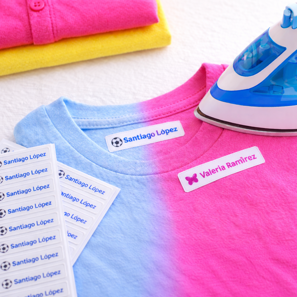 Porque son una solución práctica y duradera para marcar la ropa escolar sin coser, sin dañar la prenda y con un acabado moderno que se mantiene lavado tras lavado.